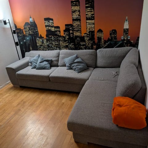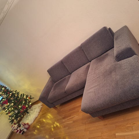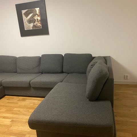 Brun L-formad ikea soffa. Köpt av tidigare hyresgäst och säljes pga att jag köpt ny soffa. Köpa och hämtas i befintligt skick