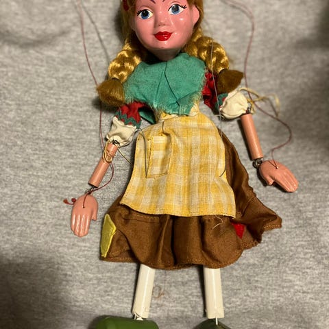 Träfigur fågel med rörliga ben och vingar - Marionett