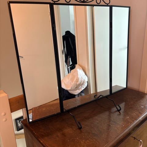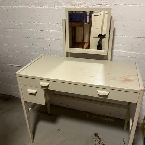 Det finns gott om plats för smink och smycken i de två små lådorna och den stora dolda lådan under toalettbordet.