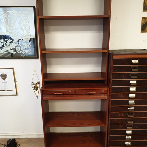 12 stycken hyllplan finns, men man väljer själv hur många man vill ha uppsatta! Bra skick.