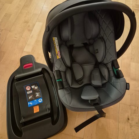 Babyskydd inklusive Isofix i mycket bra skick med avtagbar överdrag som går att tvätta i handtvätt.