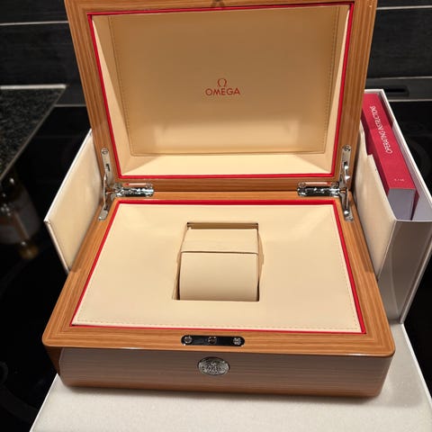 Klockan är uttagen 2020 hos svensk AD, jag är andra ägaren. Fint skick med lättare spår av användning, företrädesvis på baksidan och de polerade delarna. Medföljer två OEM-band: oanvänt original syntetarmband samt original gummiarmband (något kortat för att passa handled om cirka 19 cm). Fullset – inklusive stora boxen, manual och stämplat certifikatkort.