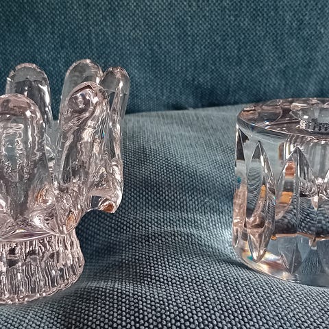Vackra, svenska ljusstakarna "Capella" från Orrefors glasbruk säljes.