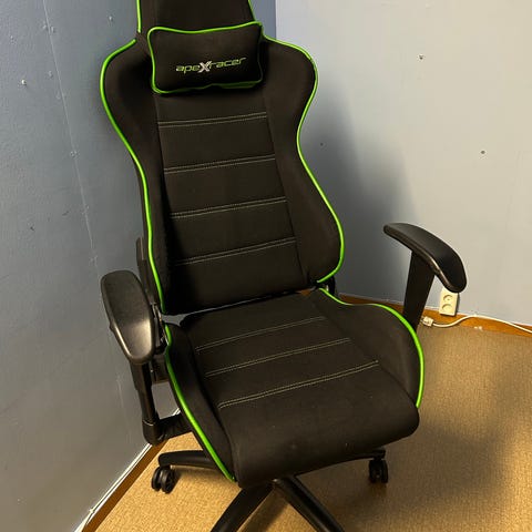 En svart Gaming stol från Arozzi. Köptes föra vintern för 3000. Väldigt skön och perfekt för Gaming.
