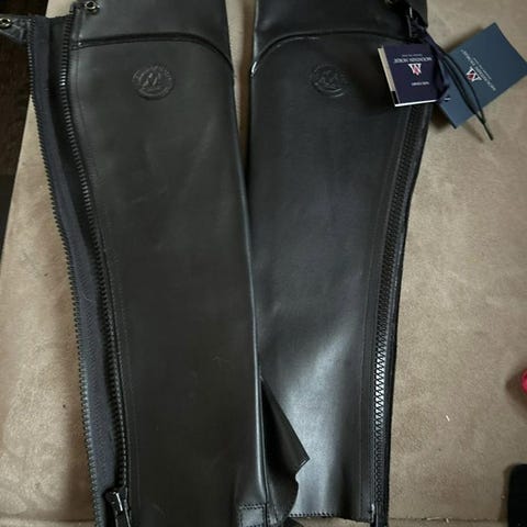 Mått: höjd/längd-35/36 cm, bredd (ihopknäppt) runt hela vaden-omkring 28-30cm.