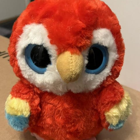 Liten söt fågel som sjunger (kvittrar) och härmar vad man säger (beroende på vilken knapp man trycker på). Fågeln lyser också i fina färger när den är på. Helt ok skick! Har varit populär hos dottern och hennes kompisar.