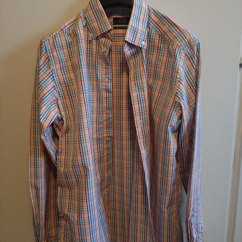 Supersnygg blå linneskjorta med cut away krage. I väldigt fint skick