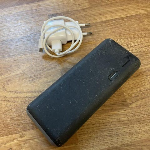 En helt oanvänd Powerbank Solar 16000 är en bärbar solcellsdriven powerbank med kapacitet på 16000 mAh. Produkten är svart och har vikbara solpaneler för laddning via solljus.