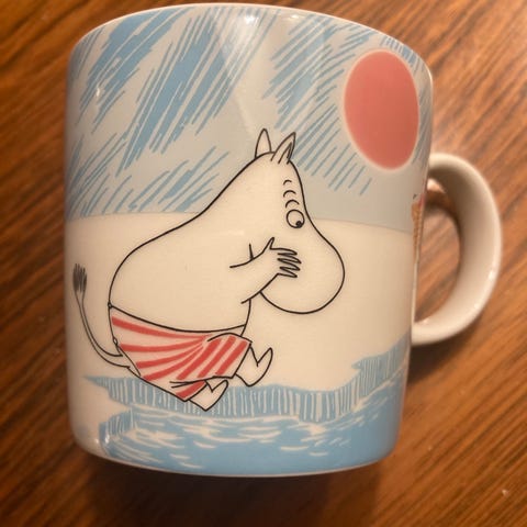 Arabia Mumin Mugg 2024 med mönster, tillverkad i keramik. Passar för vardagligt bruk i köket eller som samlarobjekt. Finns 3 st, 450 kr styck