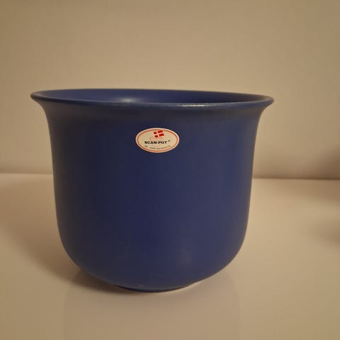 2 Scheurich krukor modell 923-15 i blå keramik. Produkten är tillverkad i Tyskland och har en rund form med räfflade detaljer. 40 kr styck