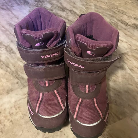 Viking barnskor i storlek 38, unisex. Skorna är blå med isolerande innersko för att hålla fötterna varma. Passar för användning i kallt väder och är lämpliga för barn.