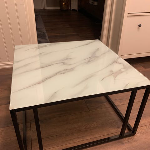 Soffbord med marmormönstrad härdad glas. Köp på Mio. Lätt att renhålla.