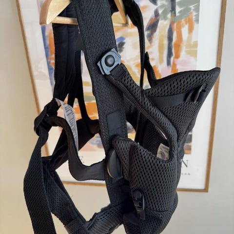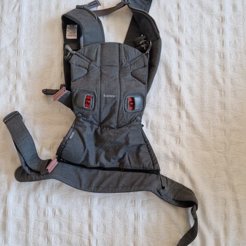 BabyBjörn Bärsele, lätt att ta på och av. Från 3,5 kg till 11 kg. Tyget är lite blekt men har väldigt mycket mer att ge.