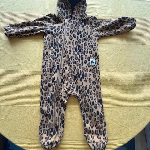 Mini Rodini Leopardmönstrad Fleeceoverall i storlek 68 för unisex. Overall i brun färg med leopardmönster, tillverkad i fleecematerial som ger värme och komfort.