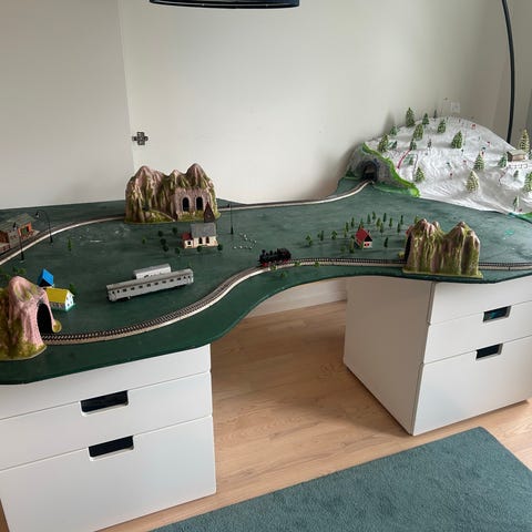 Sparsamt använd när jag var barn, så vitt jag ser så är det endast en vit bil som saknas, men köpare får självklart ta en kik om önskas. Allt funkar och är som det ska