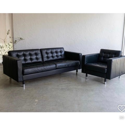 Soffa, 3-sits med två fåtöljer samt fotpallar. Allt i mörkbrunt läder. Tung, gedigen konstruktion. Välbevarad. Knappt några tecken till slitage trots att den har några år på nacken. 7500 kr komplett.