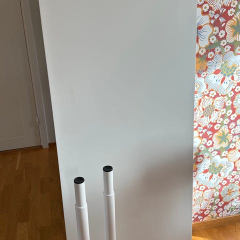 Vitt matbord med svarta ben, finns lite små repor och märken B 90 L 180 2 st iläggskivor till en L av 260 då.