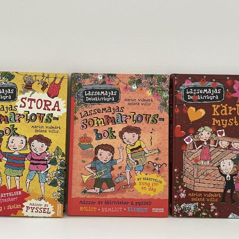 Säljer ett omfattande paket med 30 LasseMajas Detektivbyrå-böcker av Widmark & Willis. Perfekt för unga läsare, skolbibliotek eller den som vill komplettera sin samling!