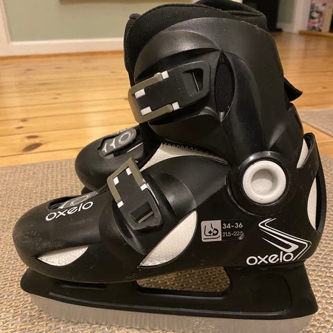 Skridskor för barn som är justerbar 34--37. Mycket fint skick som jag har beskrivit ! Original förpackning är fortfarande kvar med plastpåse.