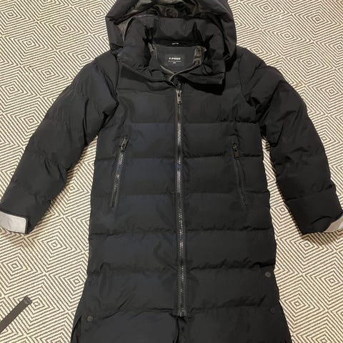 Säljer en varm och längre höst- och vinterkappa från Everest. Den är vadderad med polyester och yttertyget är vattenavvisande (10 000 mm vattenpelare). Kappan har avtagbar huva som kan justeras efter behov, fickor med dragkedja samt reflexer som viks fram i ärmslutet.