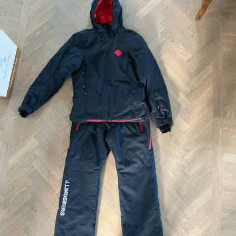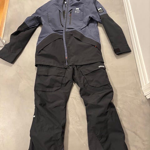 Desginade för herrar. Jackan och byxorna är tillverkade i slitstarkt och väderbeständigt material, lämpade för utomhusaktiviteter och alpin användning. Jackan har huva, flera fickor med dragkedja och justerbara detaljer för passform. Byxorna är utrustade med bältesfästen och förvaringsfickor.