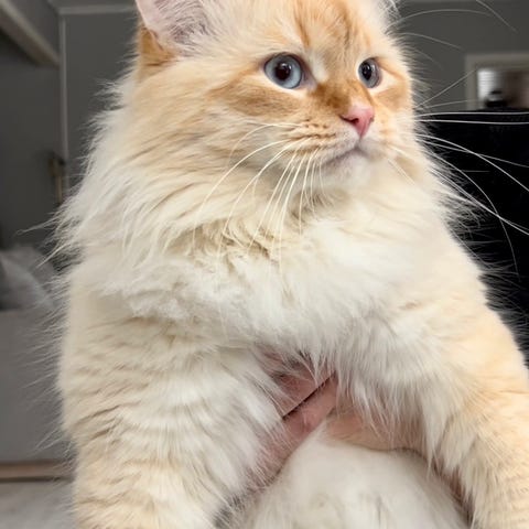 Han är vaccinerad, frisk och har ett underbart temperament. Han är 50% birma och 50% norsk skogskatt.