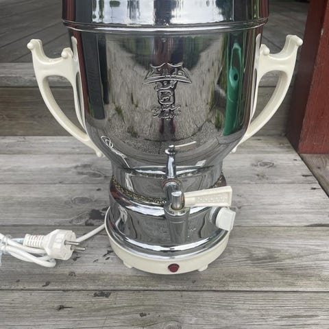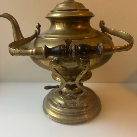 En dekorativ handmåde mönster elektrisk samovar i messing.