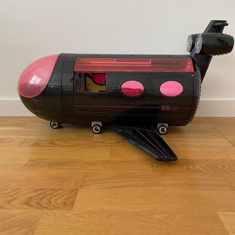 L.O.L. Surprise flygplan lekset i rosa och vit färg. Setet är utformat för barn och inkluderar sittplatser och öppningsbara delar för lek och förvaring av tillbehör och belysning. Tillverkad av plastmaterial med detaljer i flera färger.