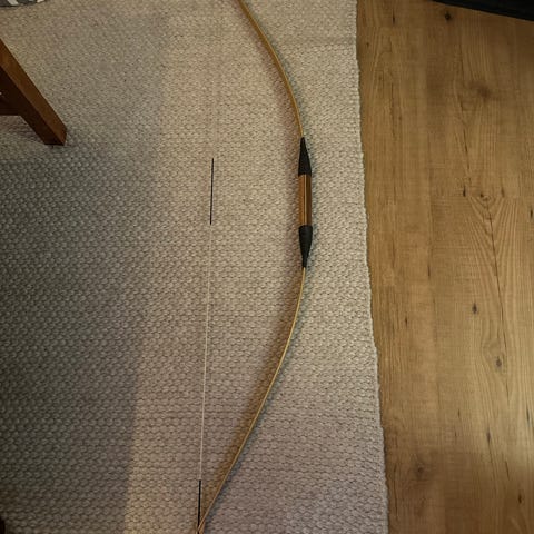 Bågskytteutrustning inklusive en båge, åtta pilar och ett koger. Oöppnad förpackning med måltavlor.