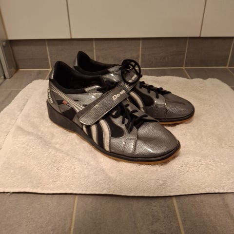 Stabila lyftarskor från Do-Win, ett par dragremmar följer med. Köpte dem när jag var på träningsläger i Kina, aldrig tränat ett pass med dem.