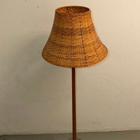 2. Golvlampa 60-tal tvåarmad med stomme omklädd i skin 2.600.-