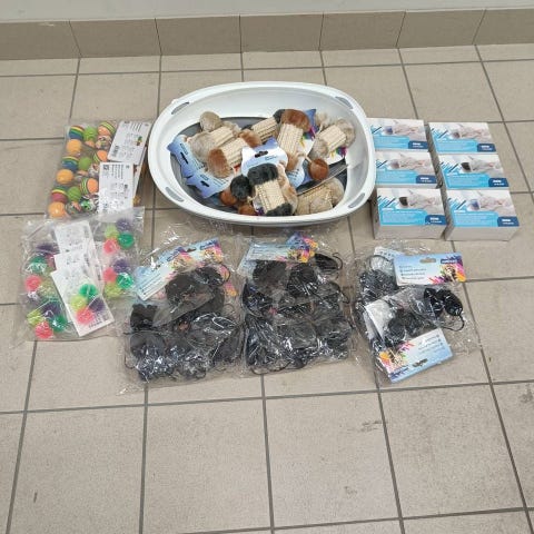 Eventuellt finns fler oanvända kattleksaker.