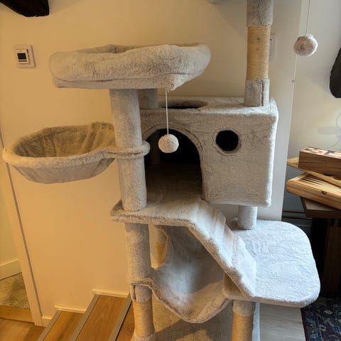 Fluffigt jättemjukt kattbo eller kattiglo med läs dyna invändigt. Inte använt av vår katt då katten var för stor för boet. Boet är för mindre katt, kattunge eller katter som gillar att koja in sig.