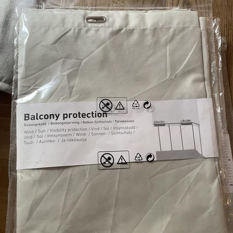 2 st Balkongskydd i gräddvit/beige färg, köpt på ditt solskydd.se .