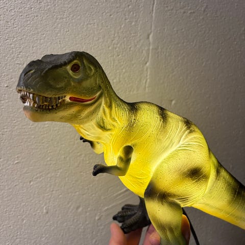 Fullt fungerande ljusslinga med dinosaurier. Ca 150cm lång. Batterier medföljer