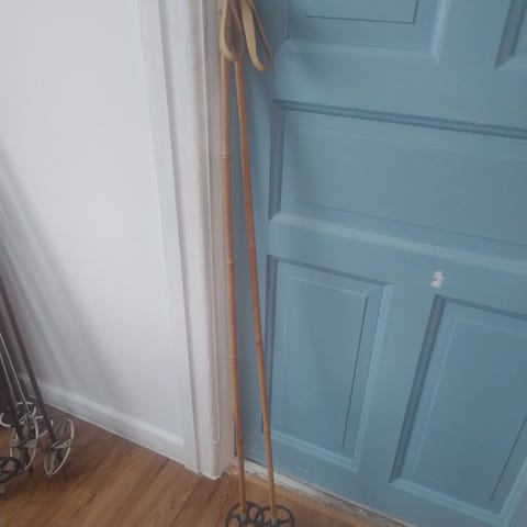 Kommer från försvaret arme'n och användes till vita blixten. Man bör ha en längre stav som dessa om man ska ut i djupsnö.