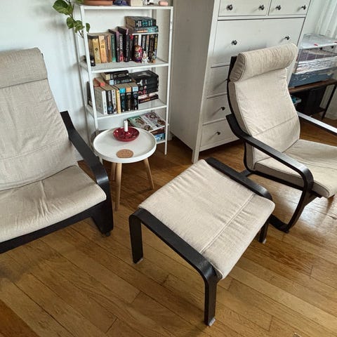 2 st Hillsdale loungefåtöljer i Svart metall med tyg ”Rhyme” beige säljes helt oanvändna pg a övermöblering.