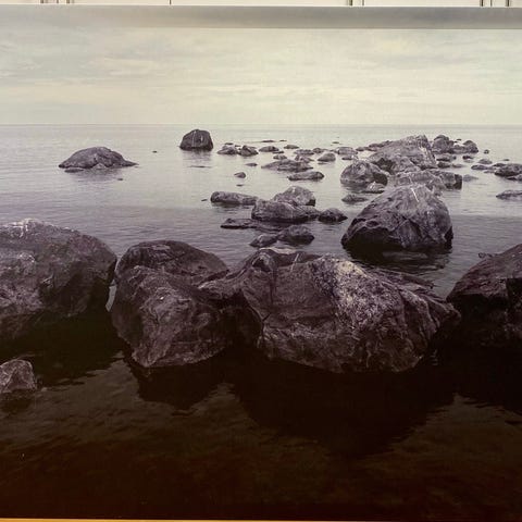 IKEA Strandland tavla med motiv av strand, hav och träd. Väggdekoration med lugnt och naturligt tema, lämplig för olika rum och miljöer.
