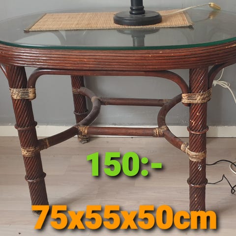 Två telefonbord/ sängbord rotting och glas Retro