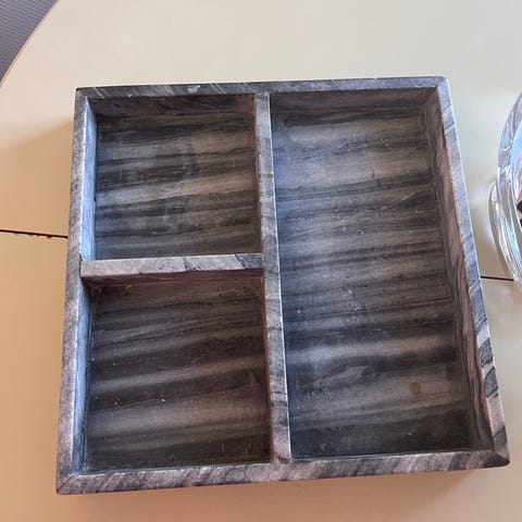 Glasunderlägg i sten/marmor från Vikens Hantverkeri.
