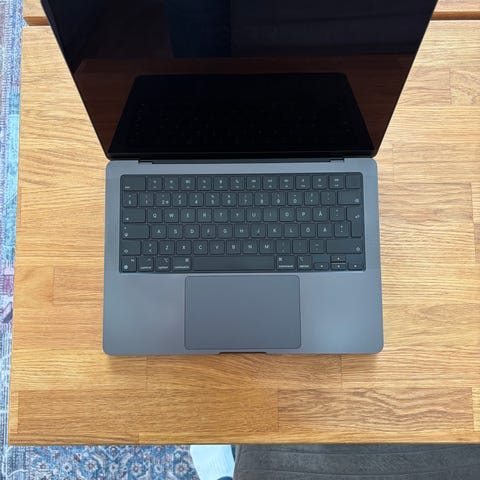 Apple MacBook Pro 14" med M3 Pro-chip, 18GB RAM och 1TB SSD-lagring.