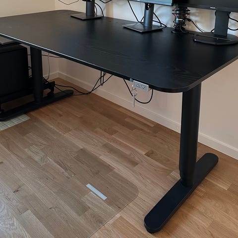 KINNARPS höj och sänkbart skrivbord med en träskiva och ben i metall. Bordet har en enkel och funktionell design, lämpligt för kontors- eller hemmabruk. Skivan är av träfärg och benen är gråa. Säljes enbart pågrund av platsbrist för flytt.