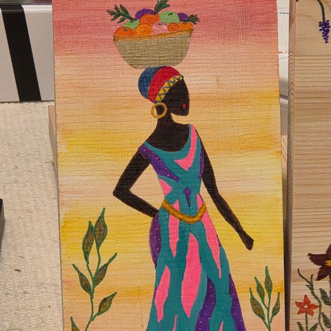 Kvinnoporträtt med pärlhalsband, olja el akryl, 55x44cm