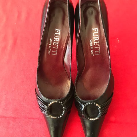 Stiliga pumps st 38 mörk bordeaux med två ljusare partier.