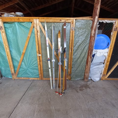 Säljer flera par skidor i olika modeller och längder. Märken som Fischer, Atomic, Head, Dynamic