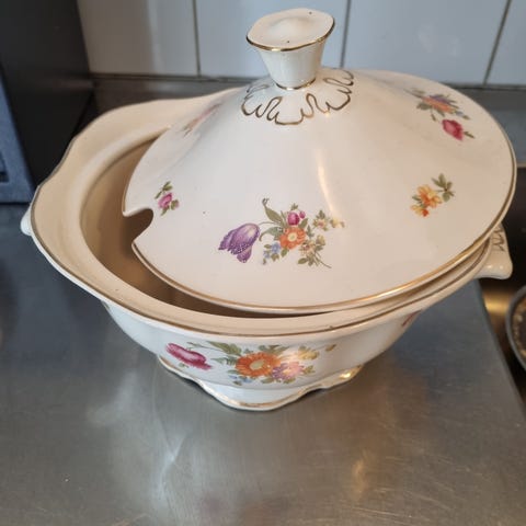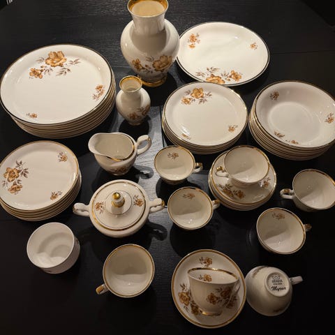 Säljer porslin från Arabia det är 7 koppar med fat plus två extra fat. 8 assietter 1 sockerskål och två äggkoppar och en tekanna det är en liten skada på locket. Syns på en bild annars är dom i jätte fint skick. Finns i västerås säljer allt för 600 kr