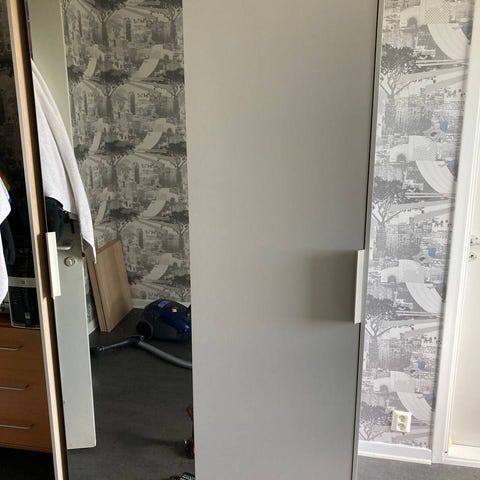 Ett äldre klädskåp eller som synes perfekt förvaring för tidningar och en samling gosedjur säljes! Fint skick. Två skåpsdörrar och två utdragbara lådor under. Stabilt. Sväljer mycket och hyllplanen är flyttbara. Hiss i huset finnes!