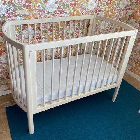 Man kan ta bort ena sidan och använda som bedside säng. Går även att justera upp den eller ner dvs madrass!