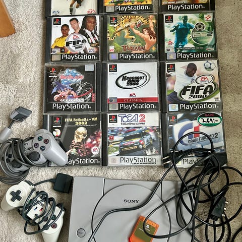 Sony Playstation Original Spelkonsol med handkontroller och spel