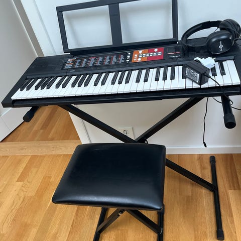 Köpte denna keyboard (med stativet) till min dotter som dock inte har använt den mer än ett tiotal gånger. Inköpt år 2016, Nypris ca 4000kr, säljs för 2100kr. Yamaha PSR E443.